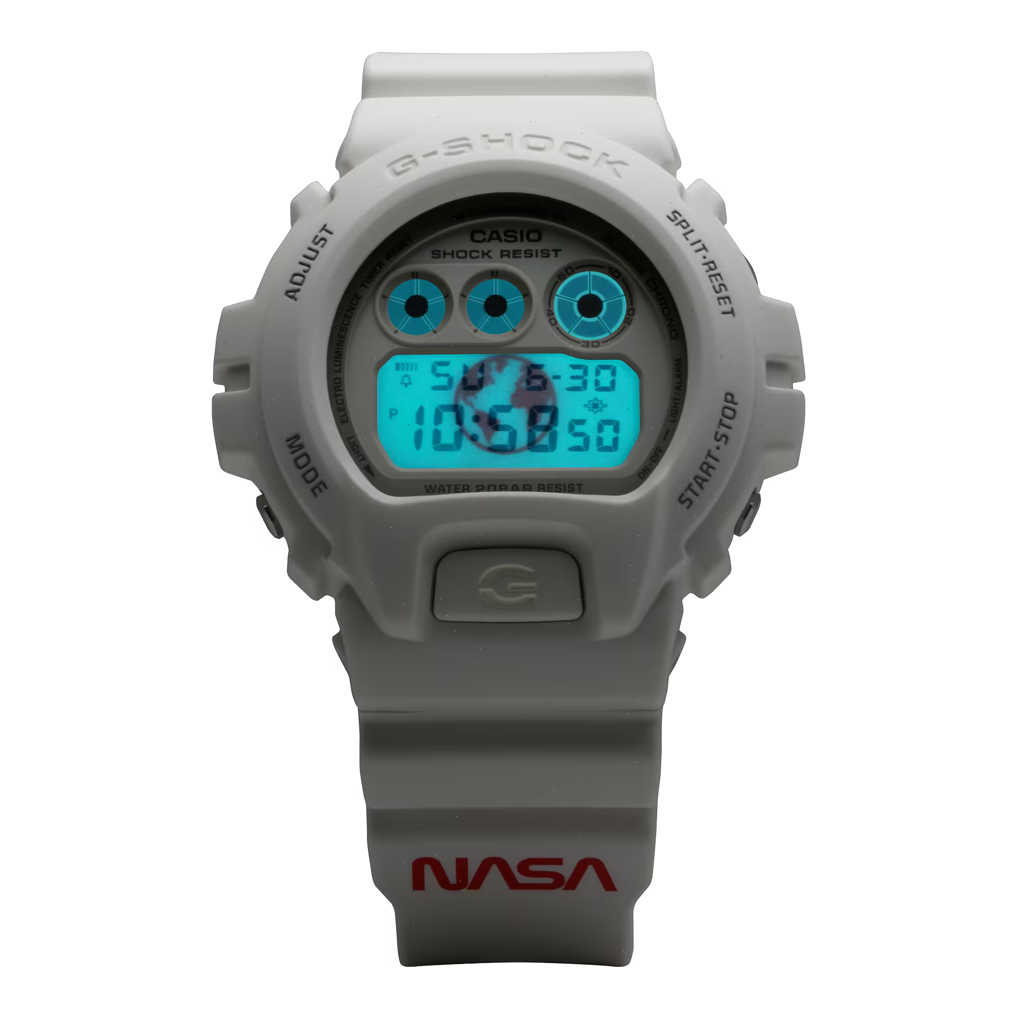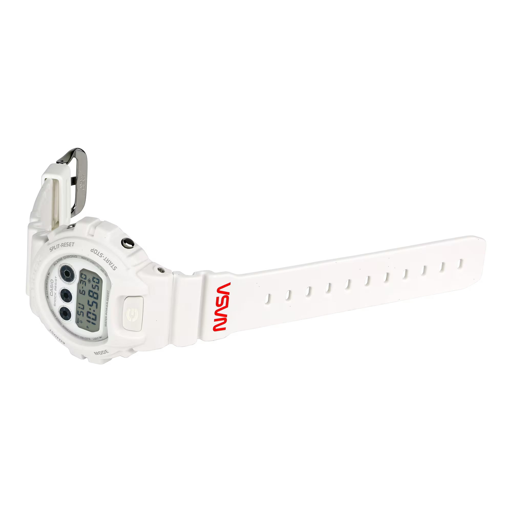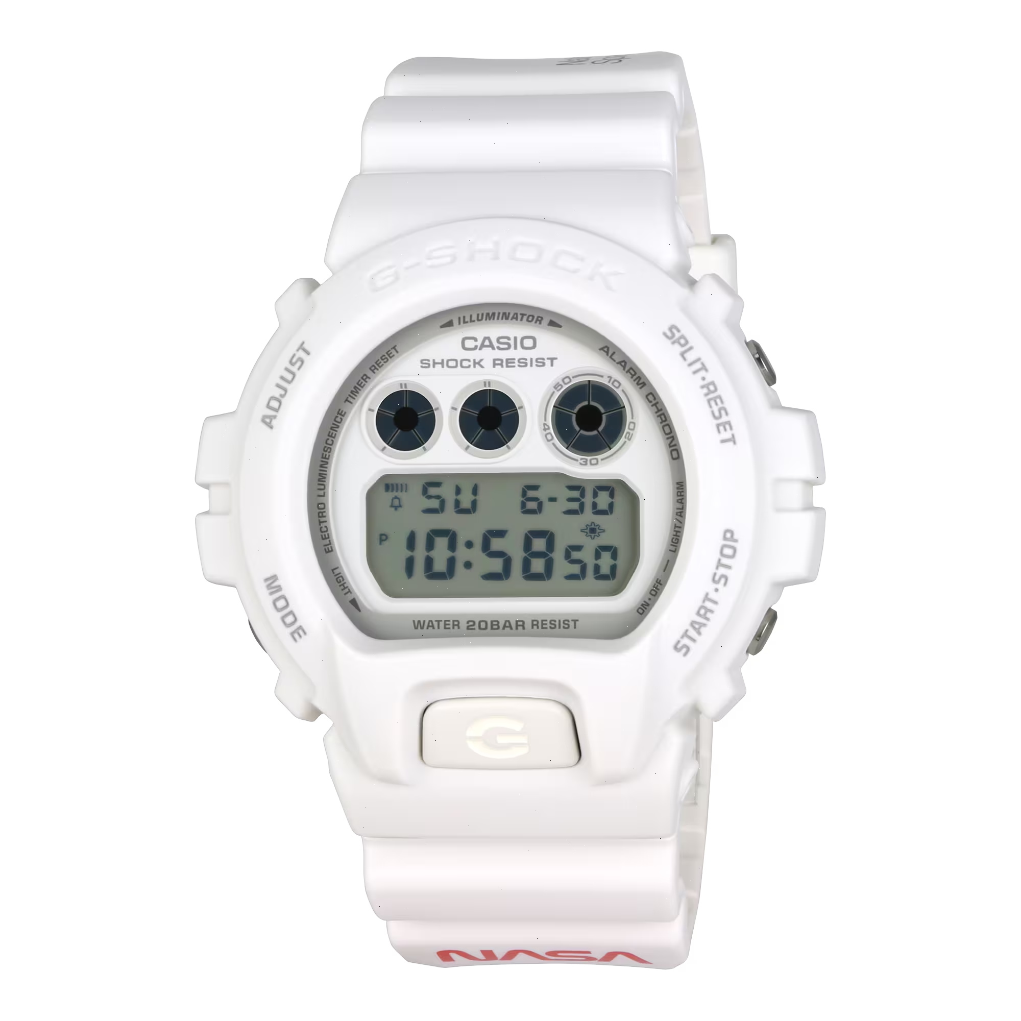 The DW6900NASA237 comes to life through the classic and timeless design of the rounded DW6900, which was first introduced in 1995 and has gone on to become a cultural icon with era-spanning popularity. In celebration of its 40th anniversary, G-SHOCK unites fans of both brands and pays homage to a beloved and influential style, inviting enthusiasts to come together and revel in the distinctive aura of this new timepiece.