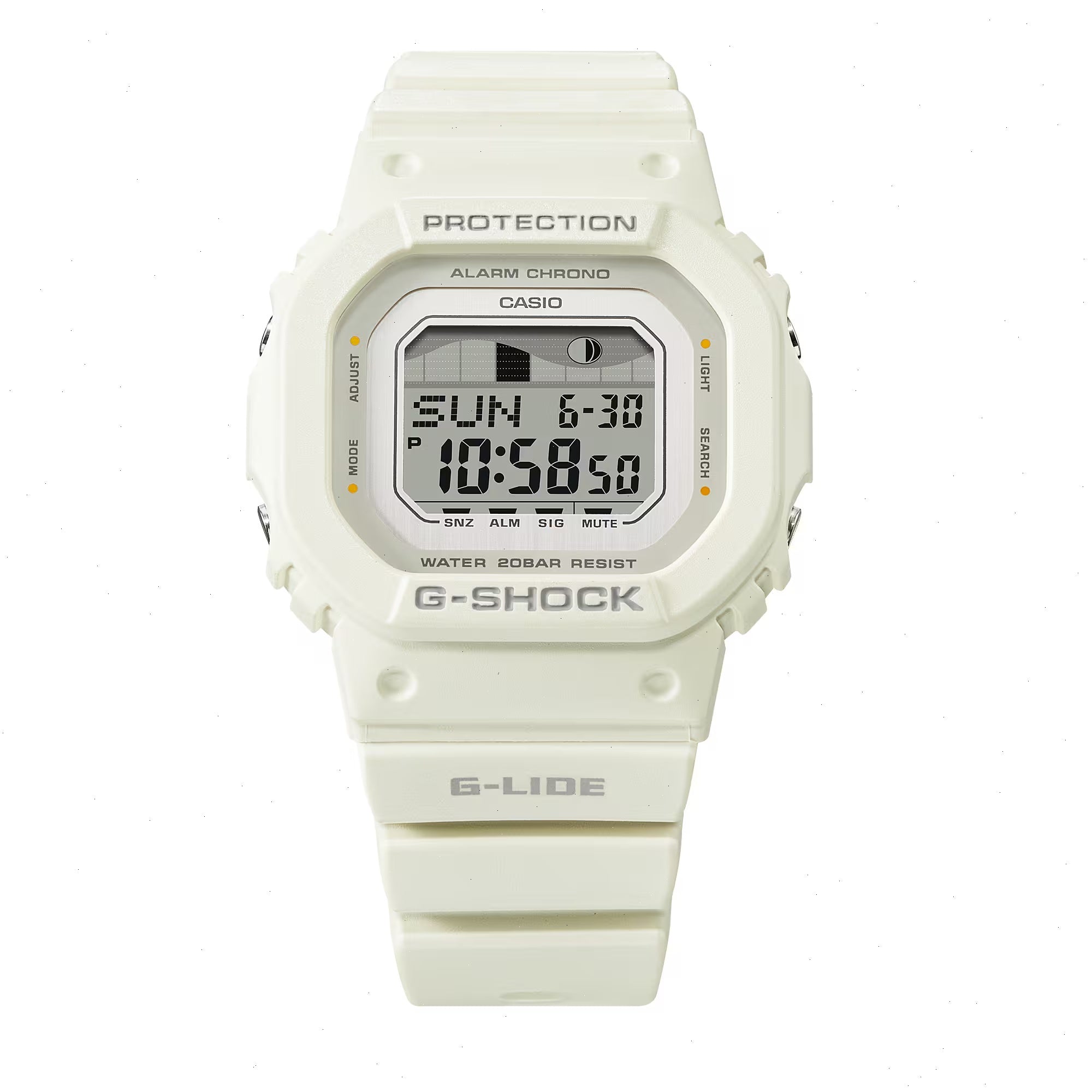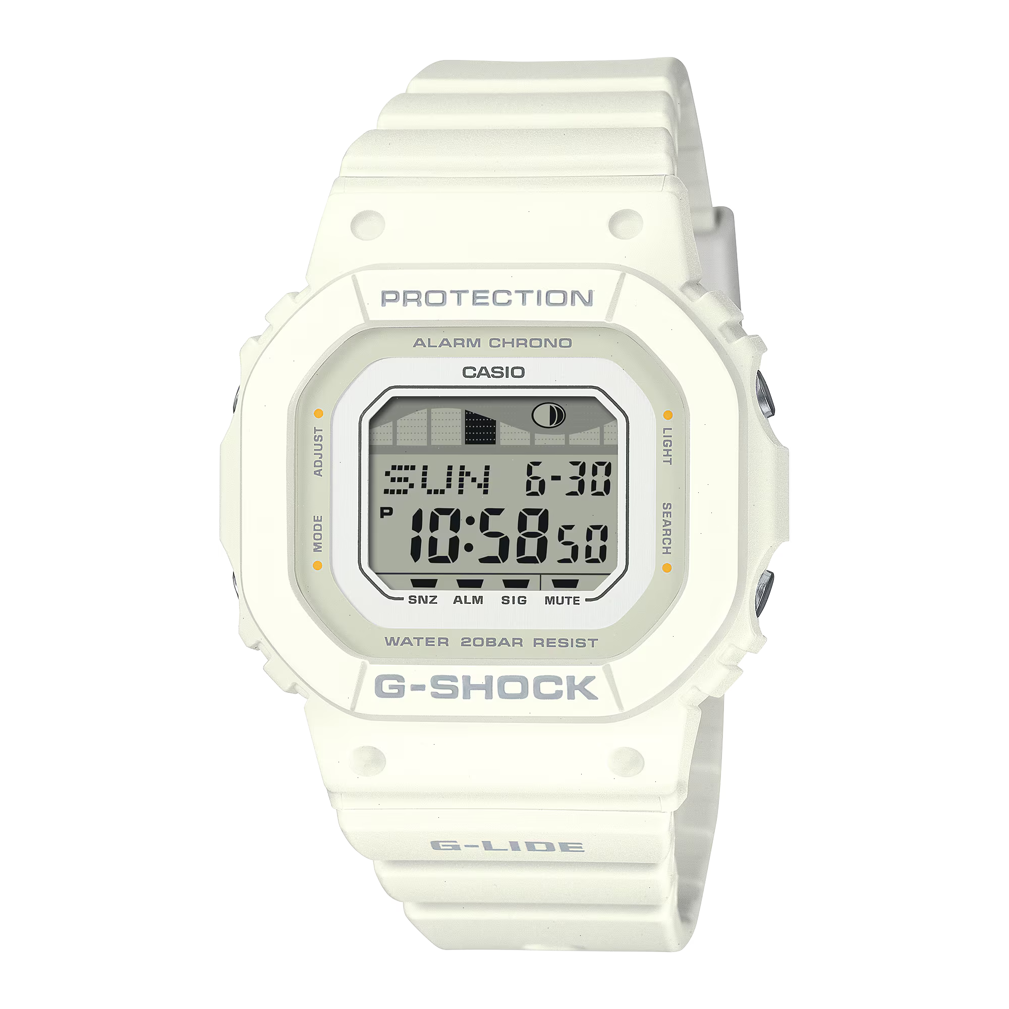 Shoot the Curl with a White G-SHOCK GLXS5600-7B Surf Watch